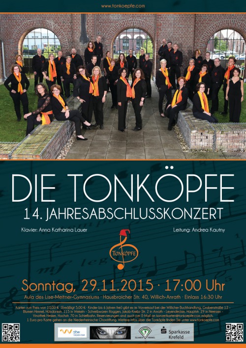 Karten im Vorverkauf per Mail an konzertkarten@tonkoepfe.com für 10 Euro (Abendkasse 12 Euro).